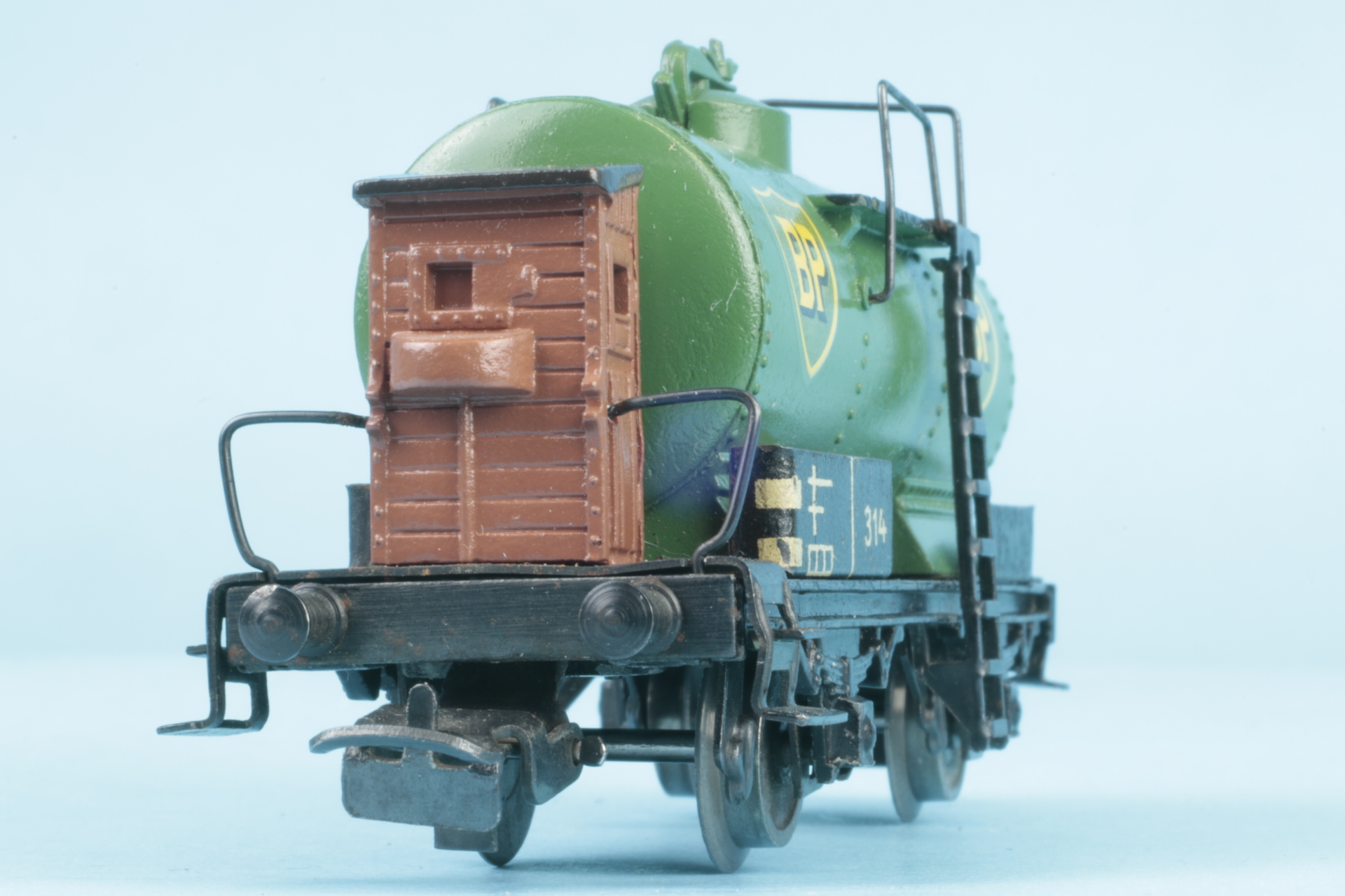 314 BP, zweiachsiger Kesselwagen, grün. BP Schiebebilder mit gelber Schrift auf grünem Grund.