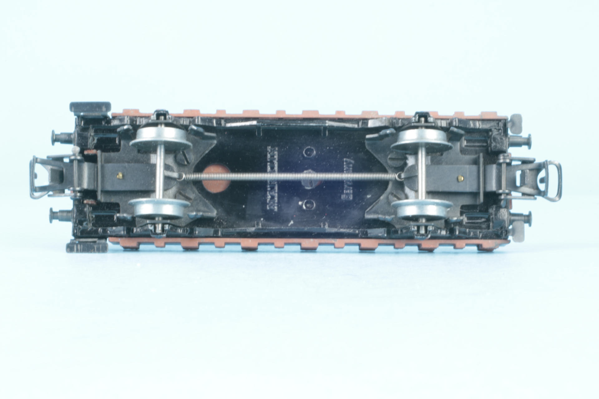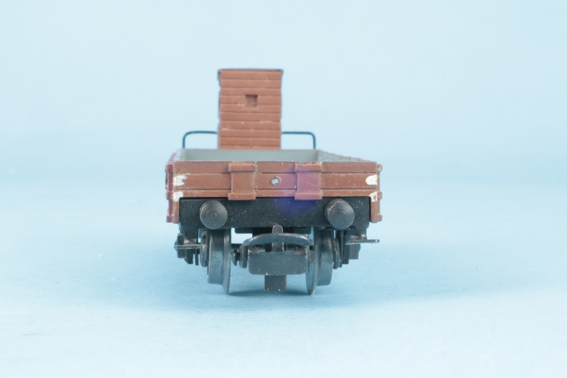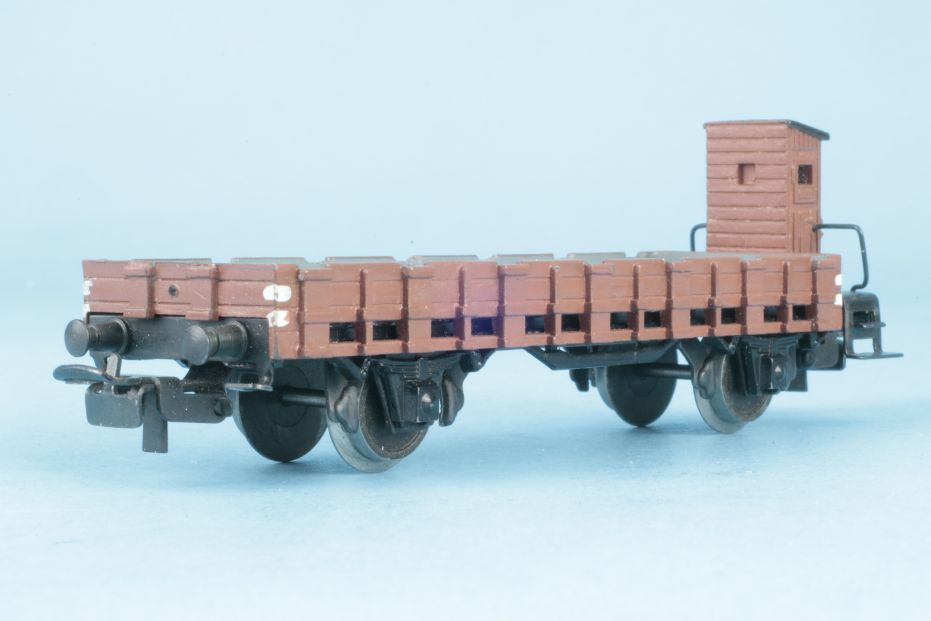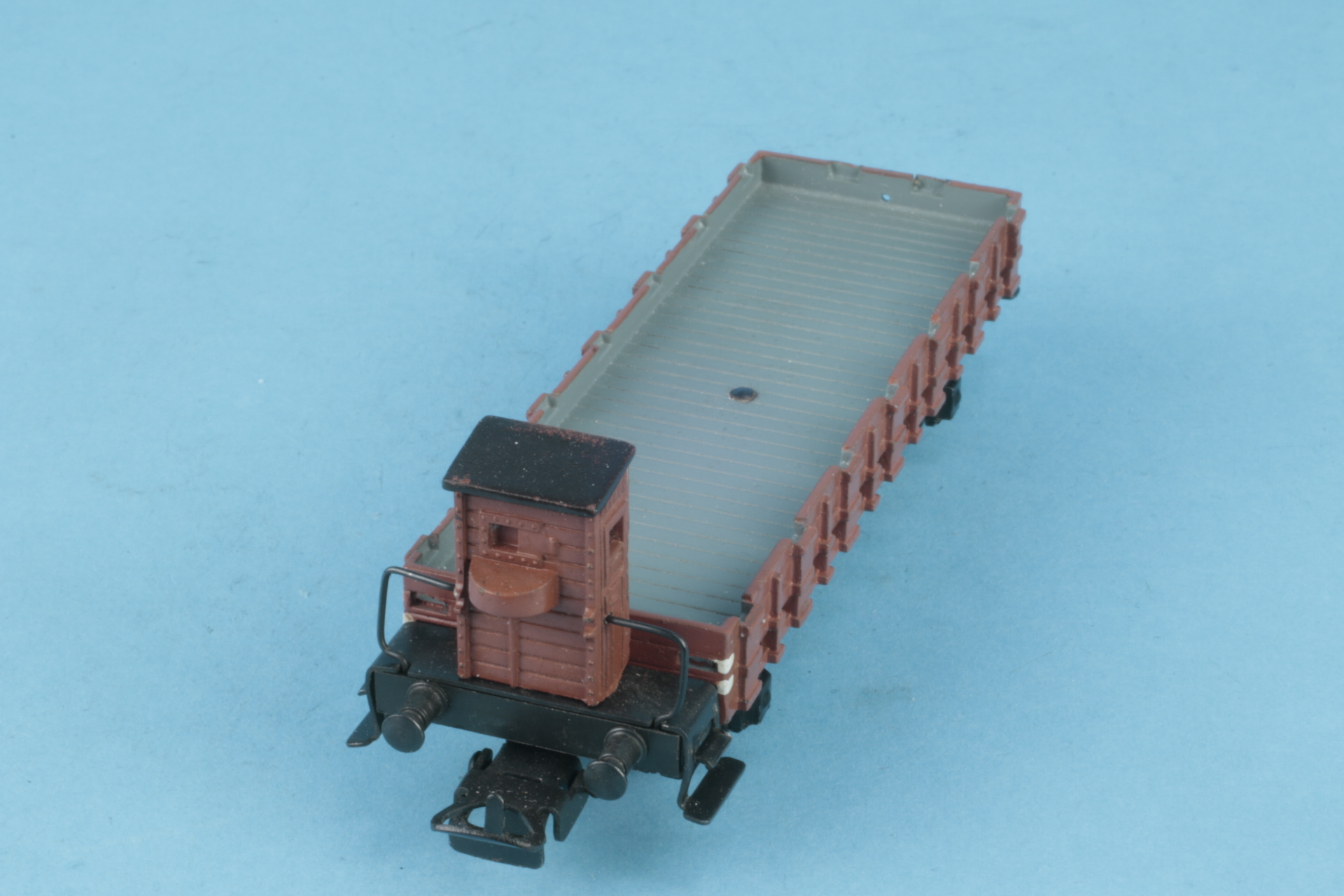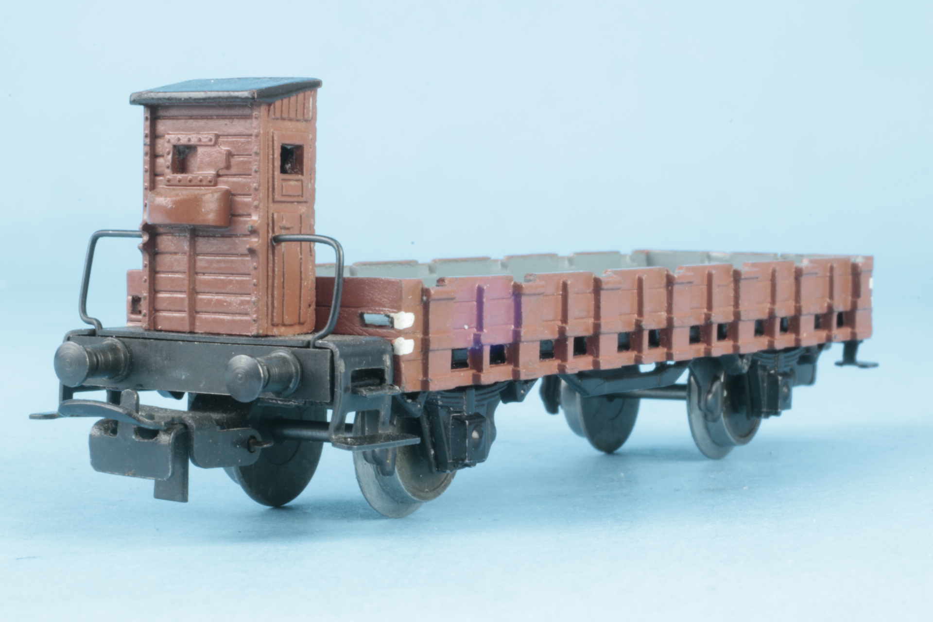 Brakeman´s cab without brake spindle. Wheel sets with axle bearing covers. Black bow couplings with small bows (type 5). Built appr. 1952. Minor signs of usage. All over good original condiiton.