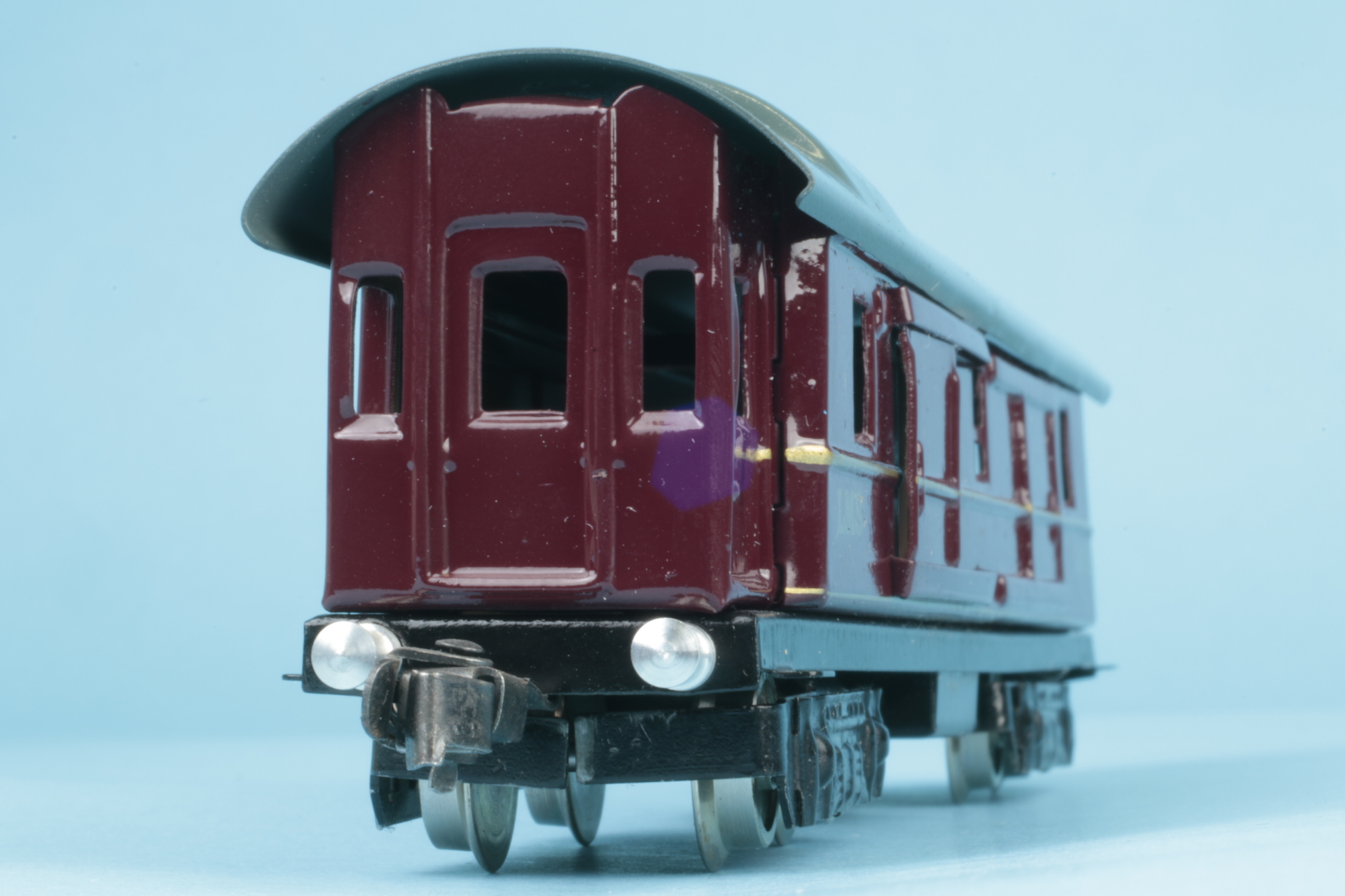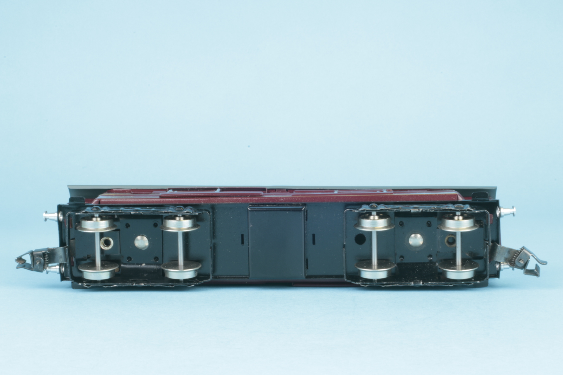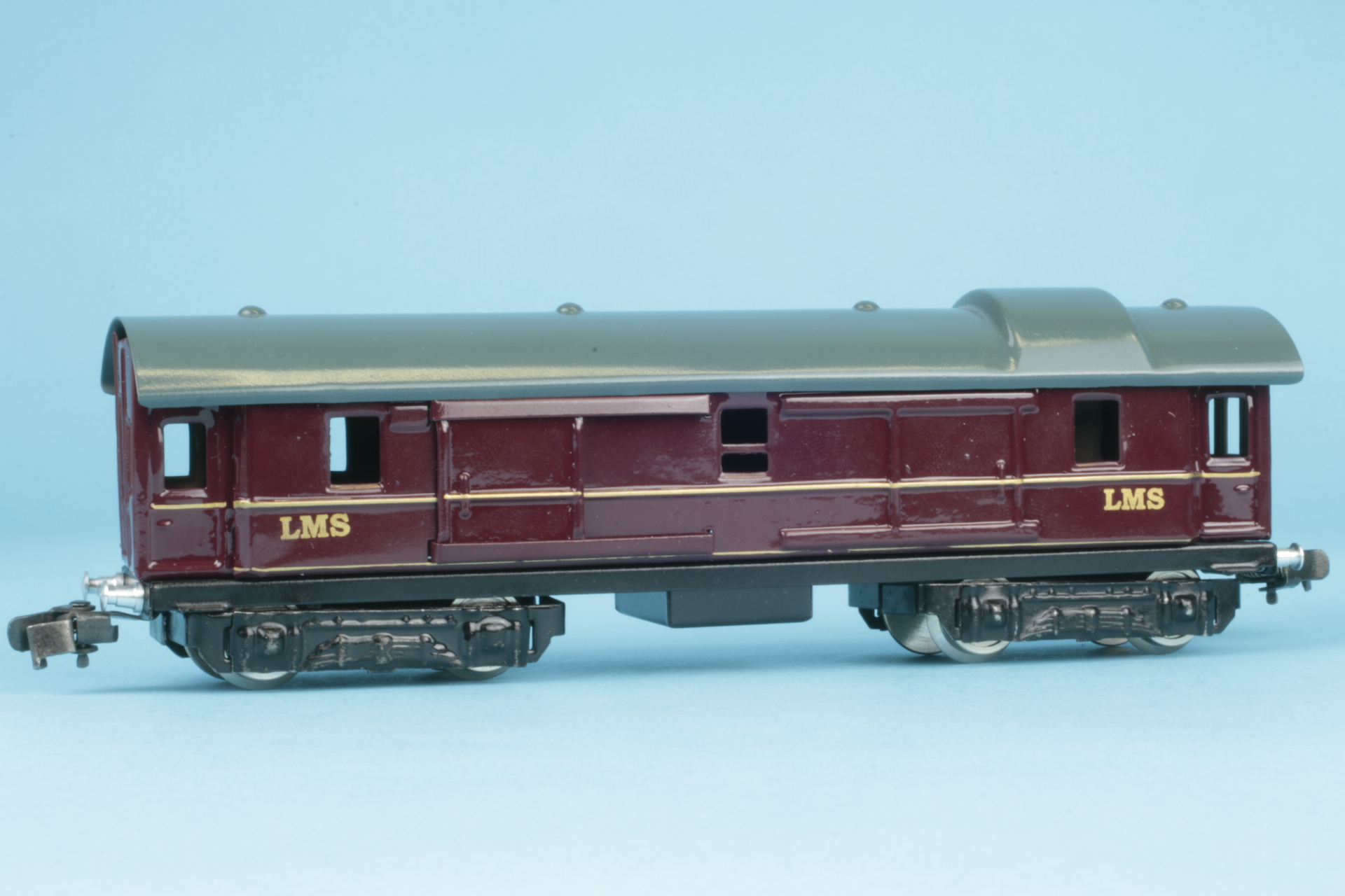 Tin bogies with black claw couplings. Built around 1936. The car was restored by us in repainted in LMS version. Very good condition.
