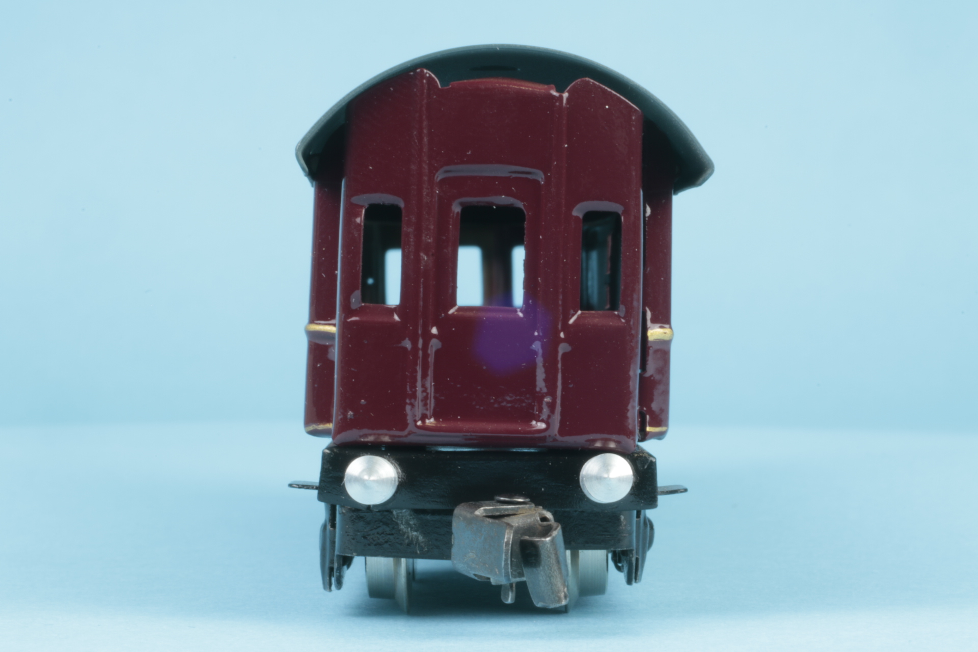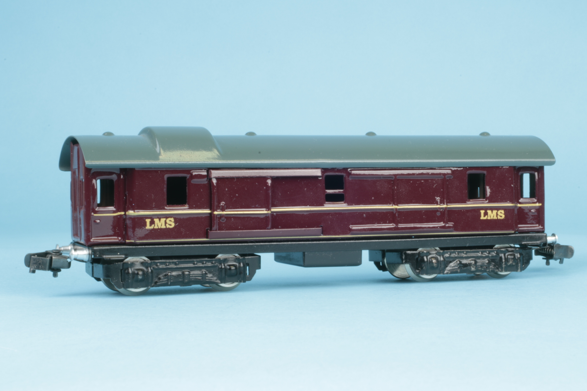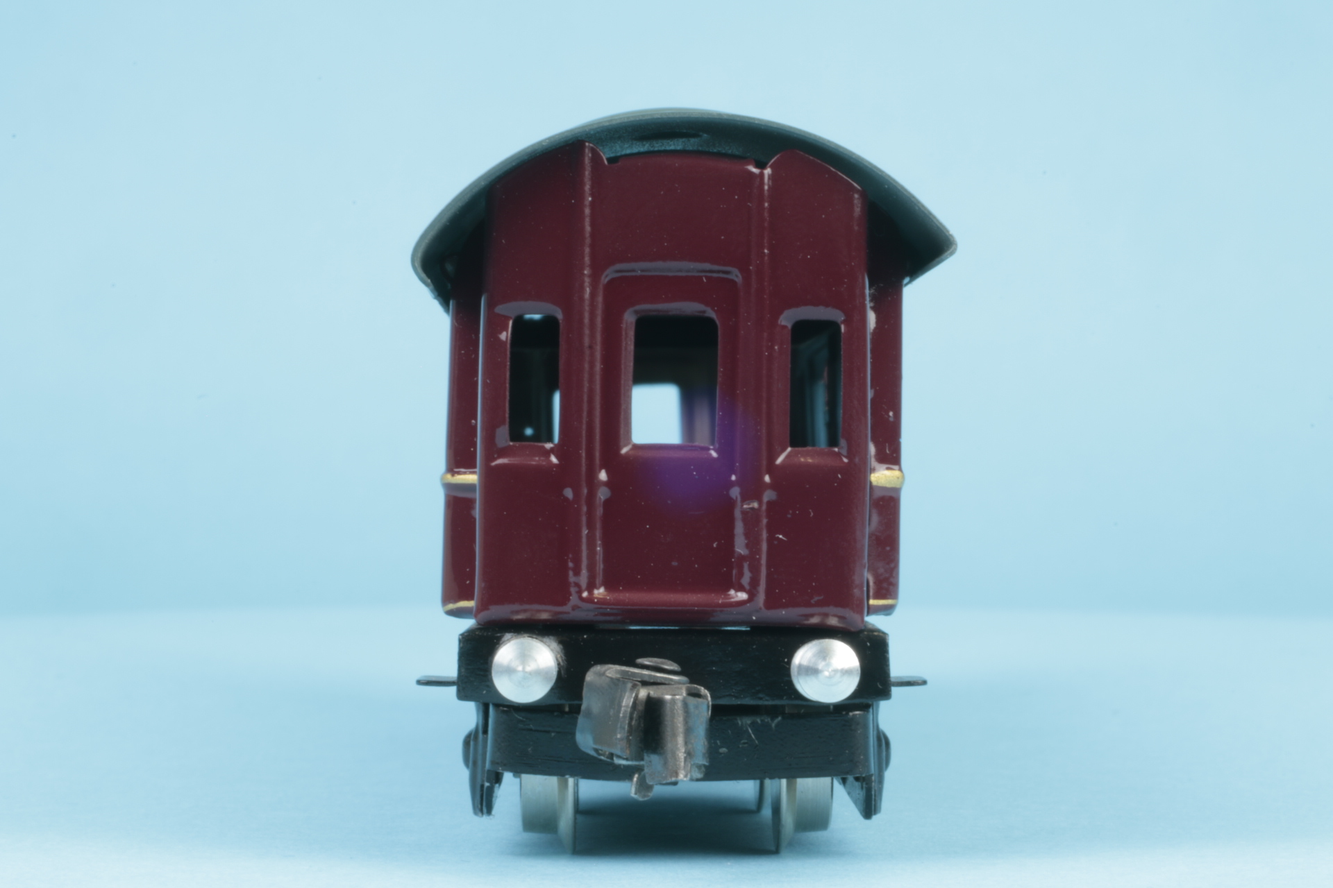 Tin bogies with black claw couplings. Built around 1936. The car was restored by us in repainted in LMS version. Very good condition.