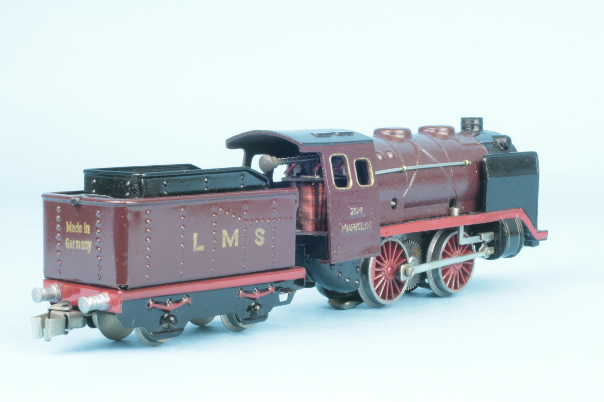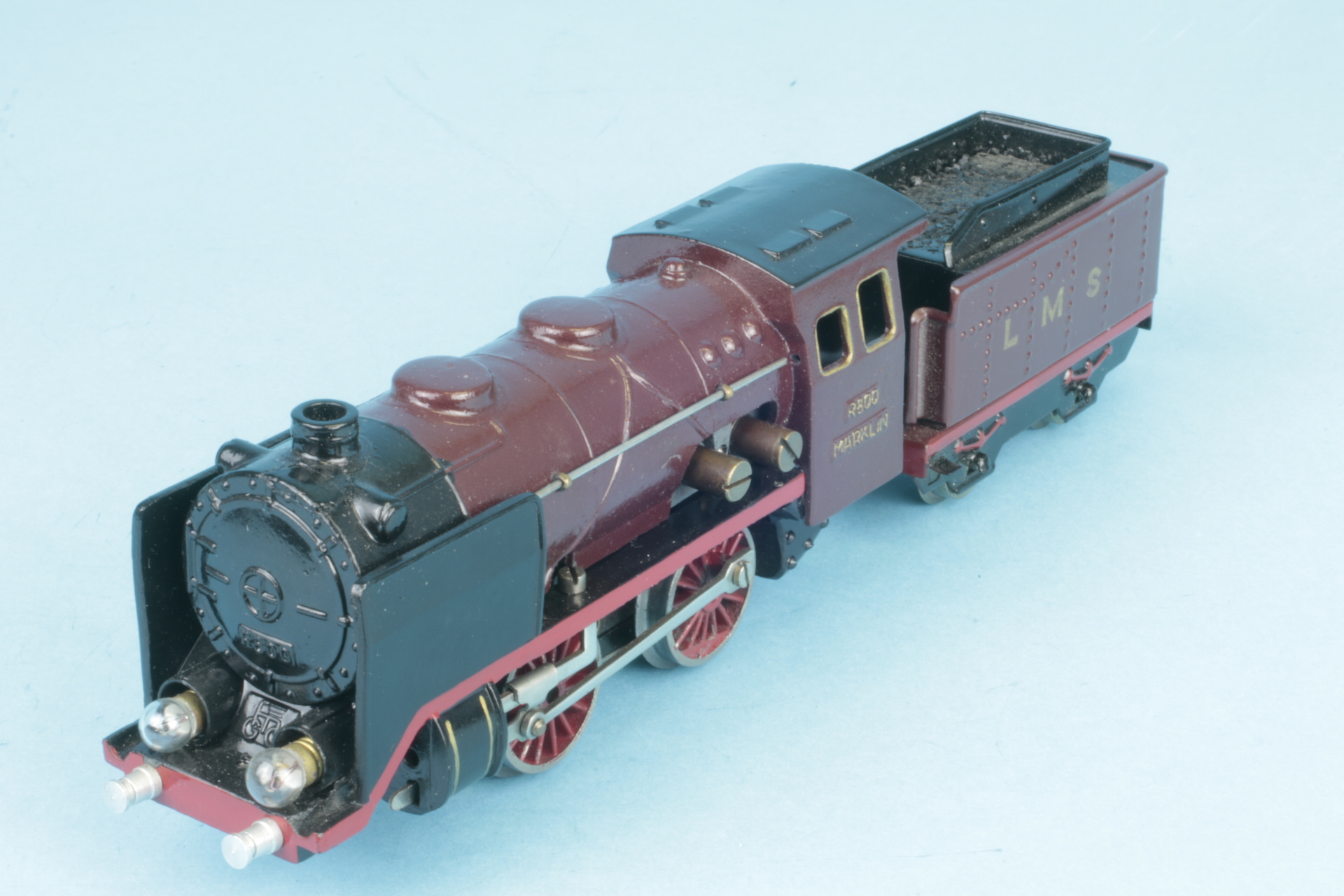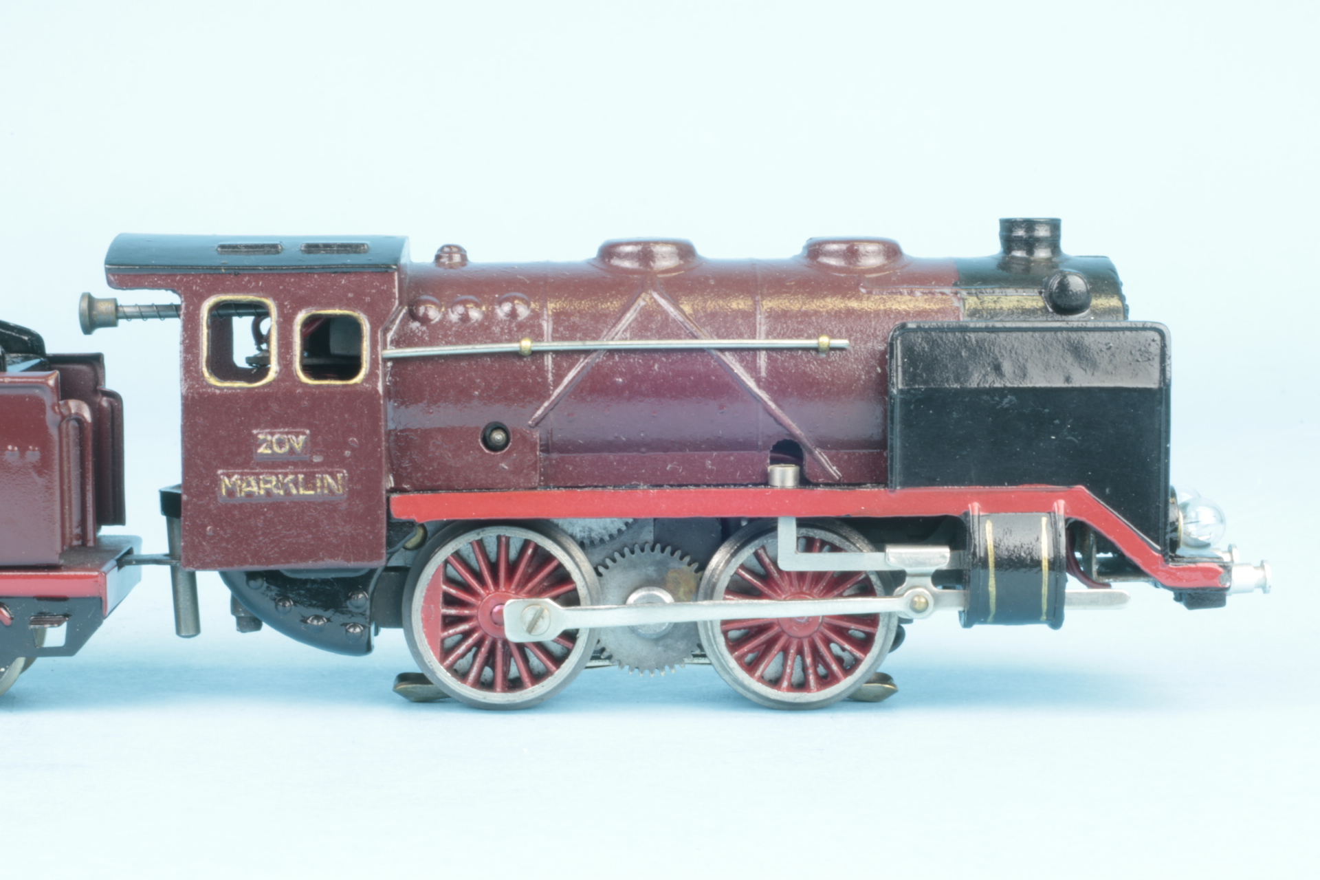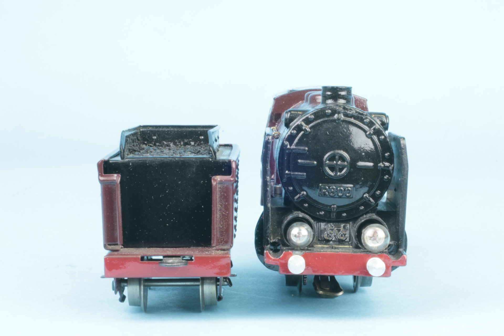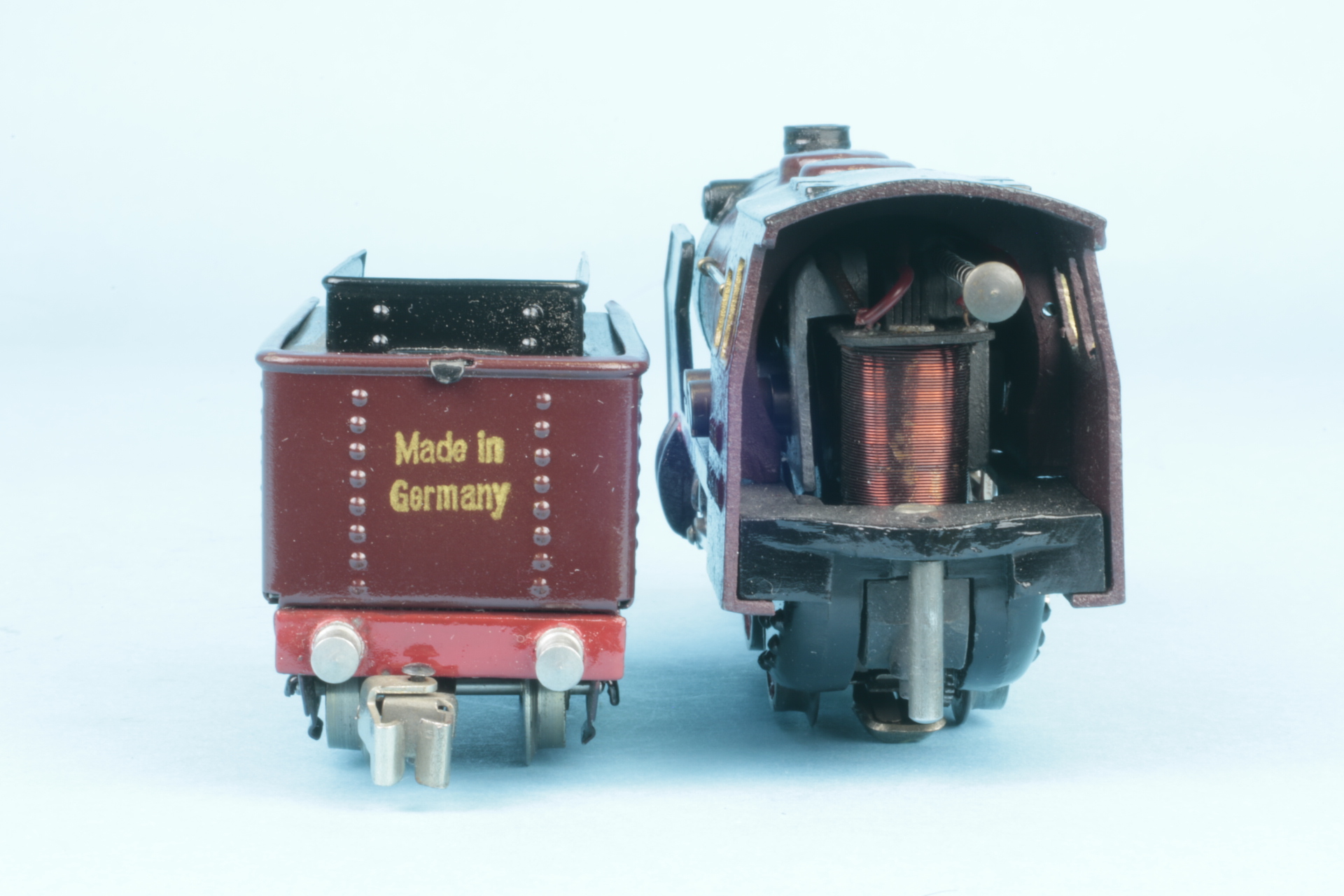 Tender with nickled claw coupling. Built around 1938. Repainted. Locomotive boiler repaired in the front section. Otherwise in very good condition. Function tested.